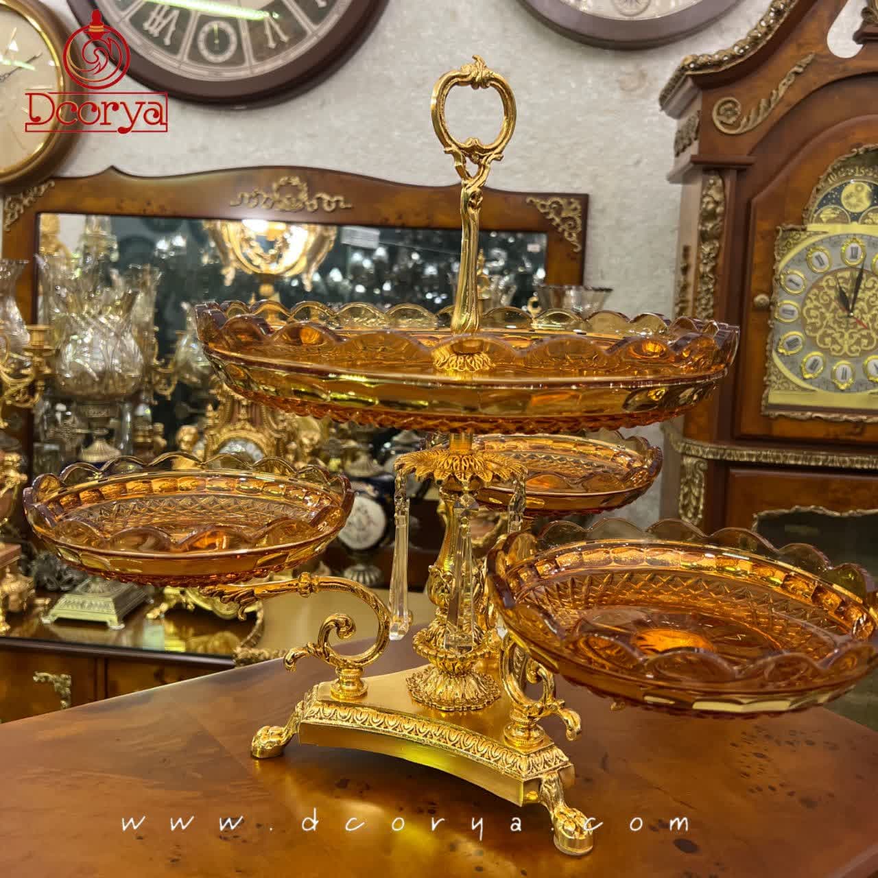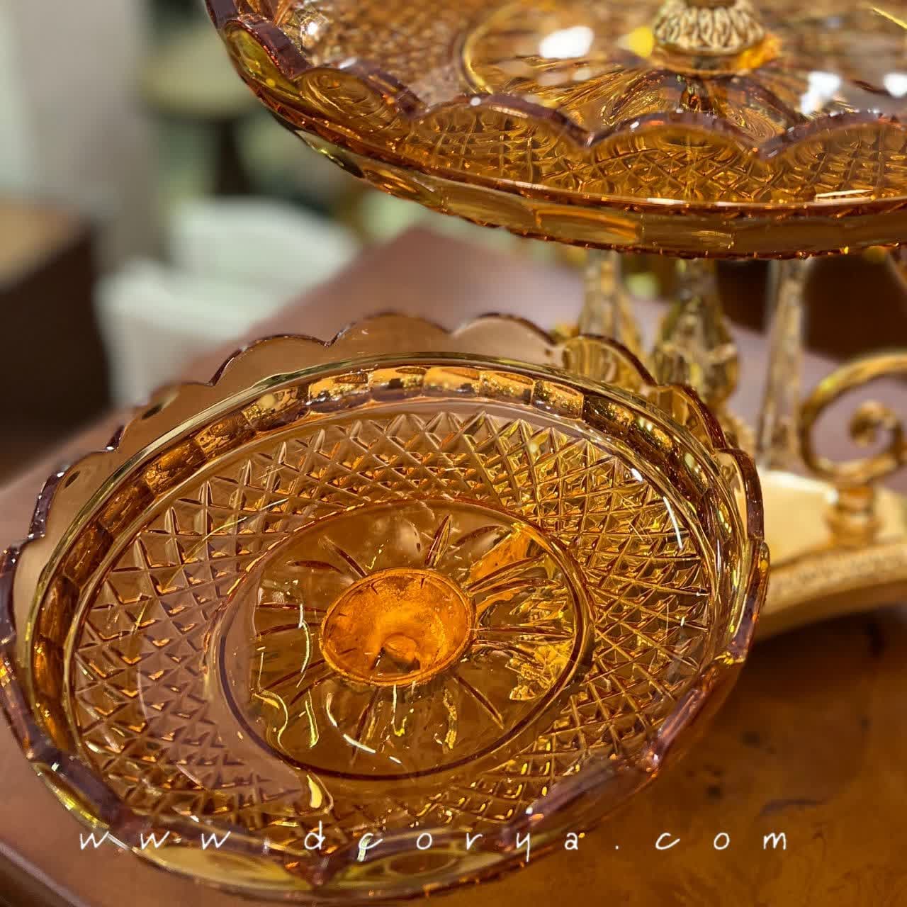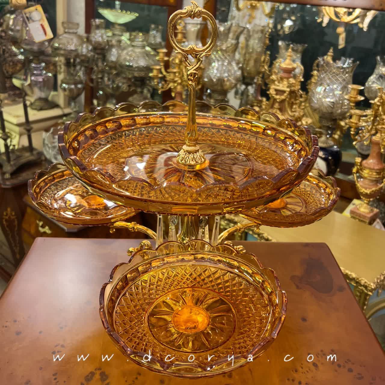 کریستال دوپوست عسلی طلاکوب هجده عیار هلندی